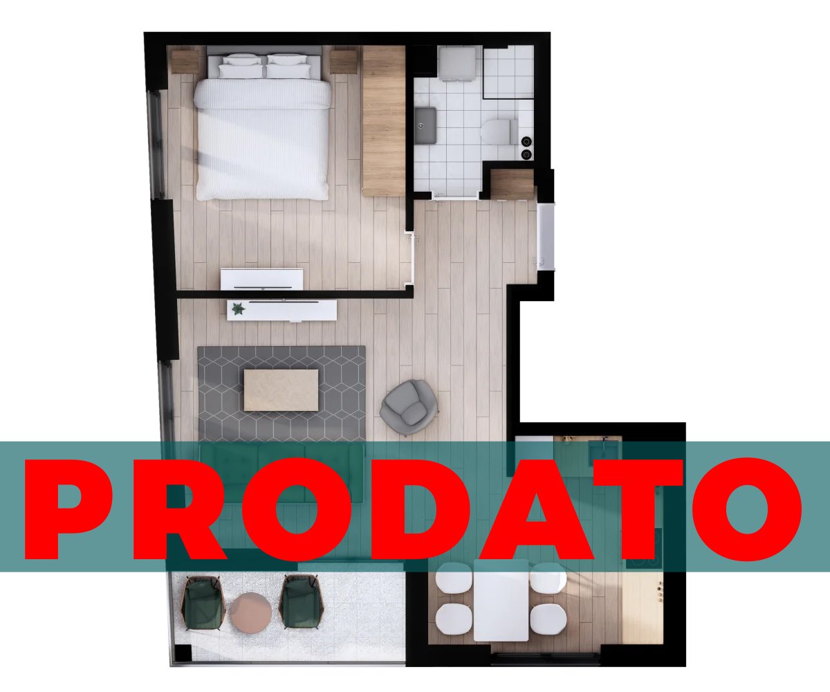 Stan 7 Pozicija stana Osnova stana *kliknite na slike za veći prikaz 3d prikaz PROSTORIJE – STAN 7 1. Pretprostor 3.90m² 2. Toalet 1.50m² 3. Dnevna soba i trpezarija 21.79